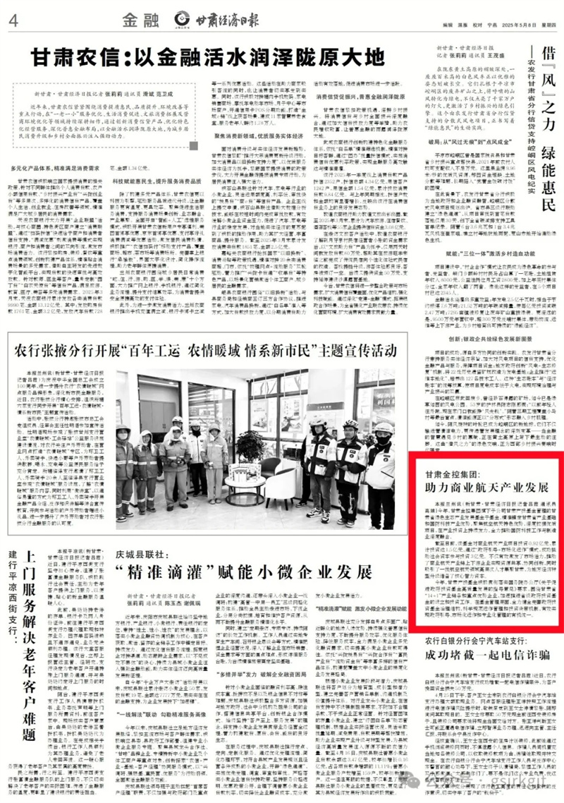 媒體關注 | 甘肅金控集團:助力商業航天產業發展