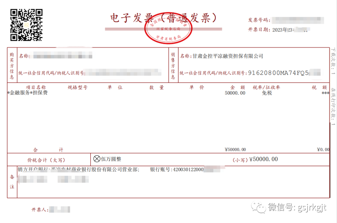 近日,甘肅金控平涼融資擔保有限公司通過甘肅省電子稅務局平臺開具了首張全面數字化的電子發票(以下簡稱“數電票”),并獲受票方公司順利接收。此次“數電票”的線上全流程實踐,邁出了票據無紙化重要的一步,對公司財務數字化管理的探索具有重大意義。
